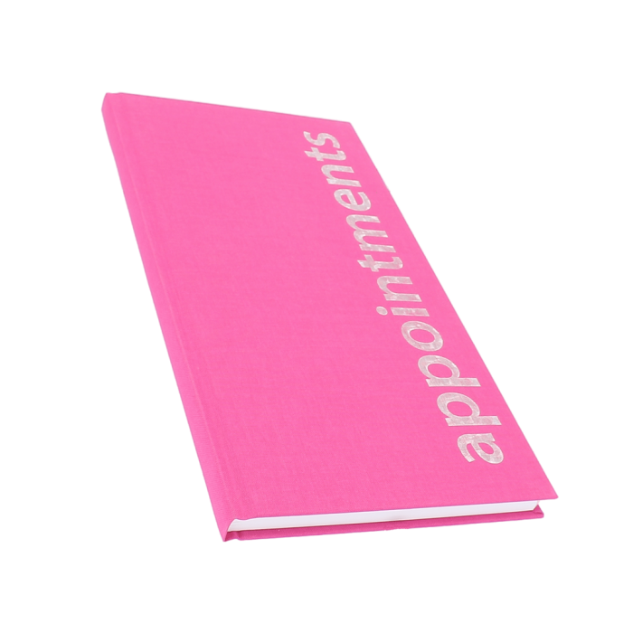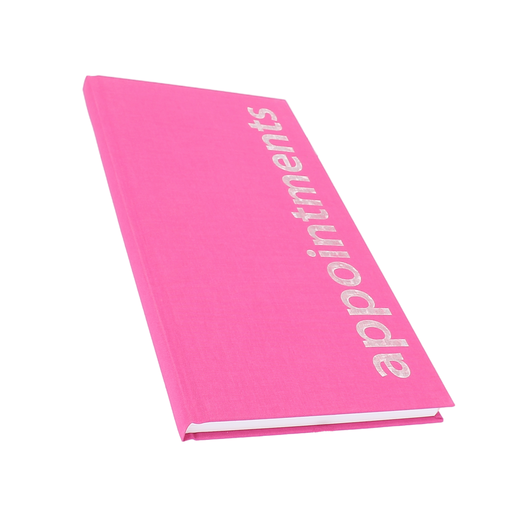 15 minute intervals, 8am to 8.45pm, one page per day. Hard case bound in Pink.
