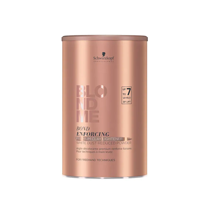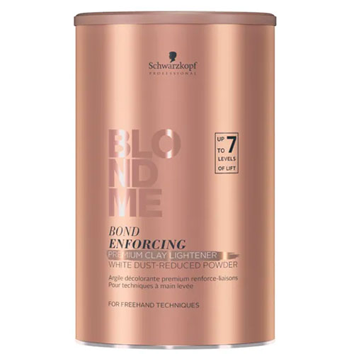 Freehand blondes with ease, precision and care. Schwarzkopf BLONDME Bond Enforcing Premium Clay Lightener features a "soft to solid" formula that's designed for ease of use with today's freehand balayage techniques. Simply paint it on and a hard outer shell forms while the lightener goes to work underneath, lifting hair up to 7 levels. It's made with Schwarzkopf's Integrated Bond Enforcing Technology which uses succinic acid to penetrate the hair during blonding to protect the hair bonds. The result is blonde hair which keeps its strength and elasticity so it's less prone to breakage.