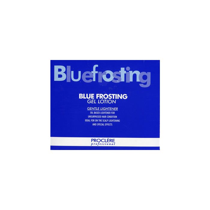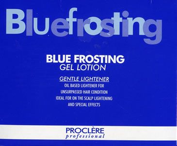Blue frosting Gel Lotion is an oil based lightener with a gentle on and off application to the scalp. The revolutionary double ashening process ensures the palest blonde on any type of hair.