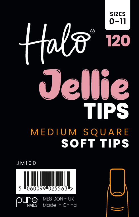 Halo Jellie Nail Tips Medium Square, Sizes 0-11, 120 Mixed Sizes