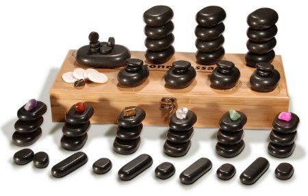 Hive Of Beautycontents - basalt stones - Extra Large (1) , Large Flat (16) , Medium Flat (18) , Small Flat (6) , Mini Pressure Point (4) , Toe (8) , Small Circular (6) , Charkra Crystals (7) , Cold Stones: Small White Marble (4)