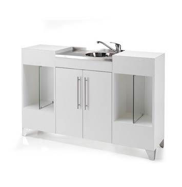 Rem Uk LimitedThe central part of the Opal Vanity Unit features a stainless steel basin and worktop with a single cold and hot water, chrome tap.