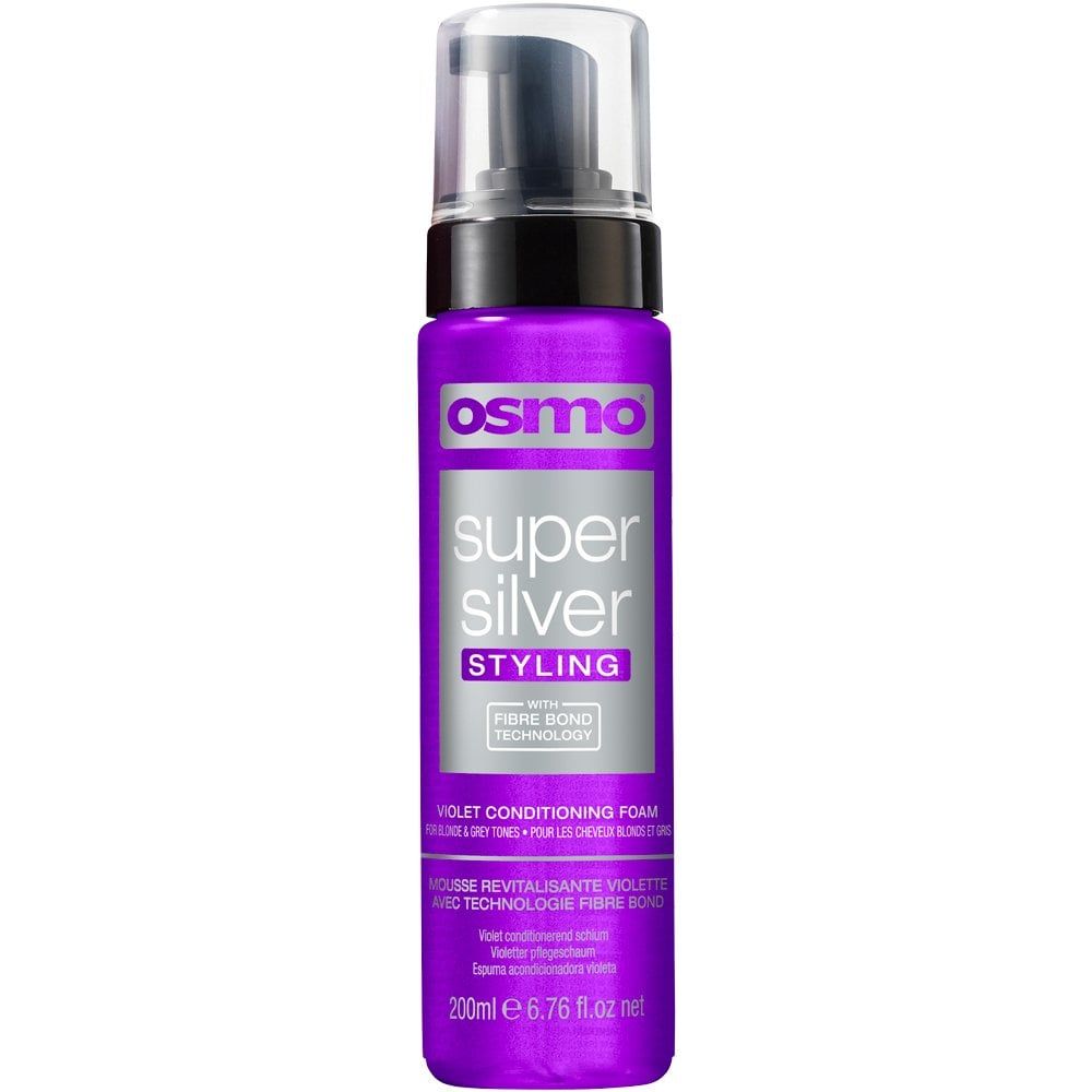 The super silver violet conditioning foam from OSMO® is a lightweight conditioning foam for all blonde and grey shades. Infused with violet pigments, its the perfect formula to counteract unwanted yellow tones.