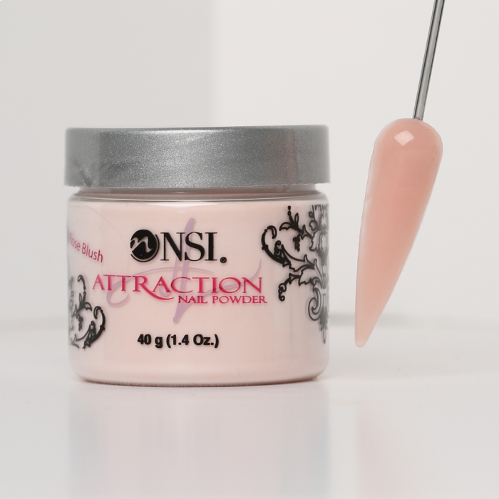 The NSI Attraction Rose Blush Acrylic Powder is a must have, warm neutral rose blush masquing powder used to create natural-looking pink and white acrylic nail enhancements.