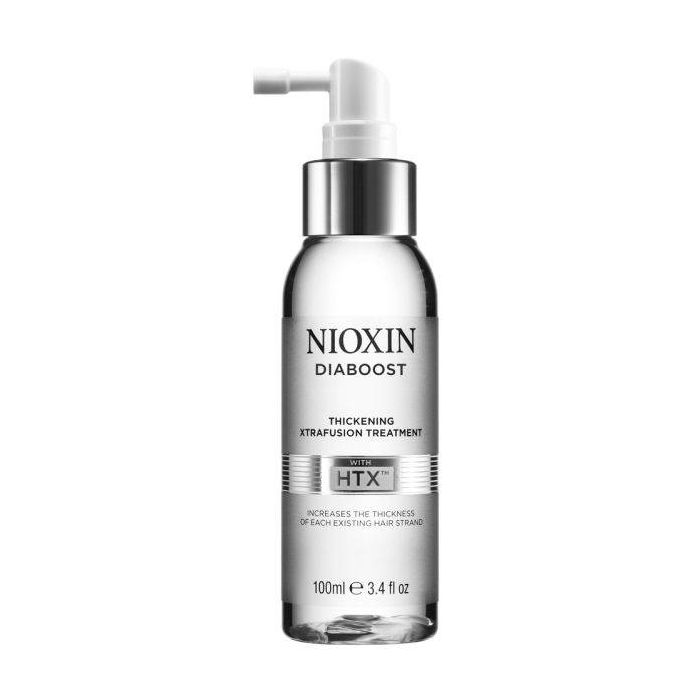 NIOXIN Diaboost with HTX, a fusion of Niacinamide, Panthenol and Caffeine, is proven to: 1. Boost your existing hair diameter instantly. 2. Penetrate hair and make it manageable and full. 3. Thicken existing hair at the roots*"